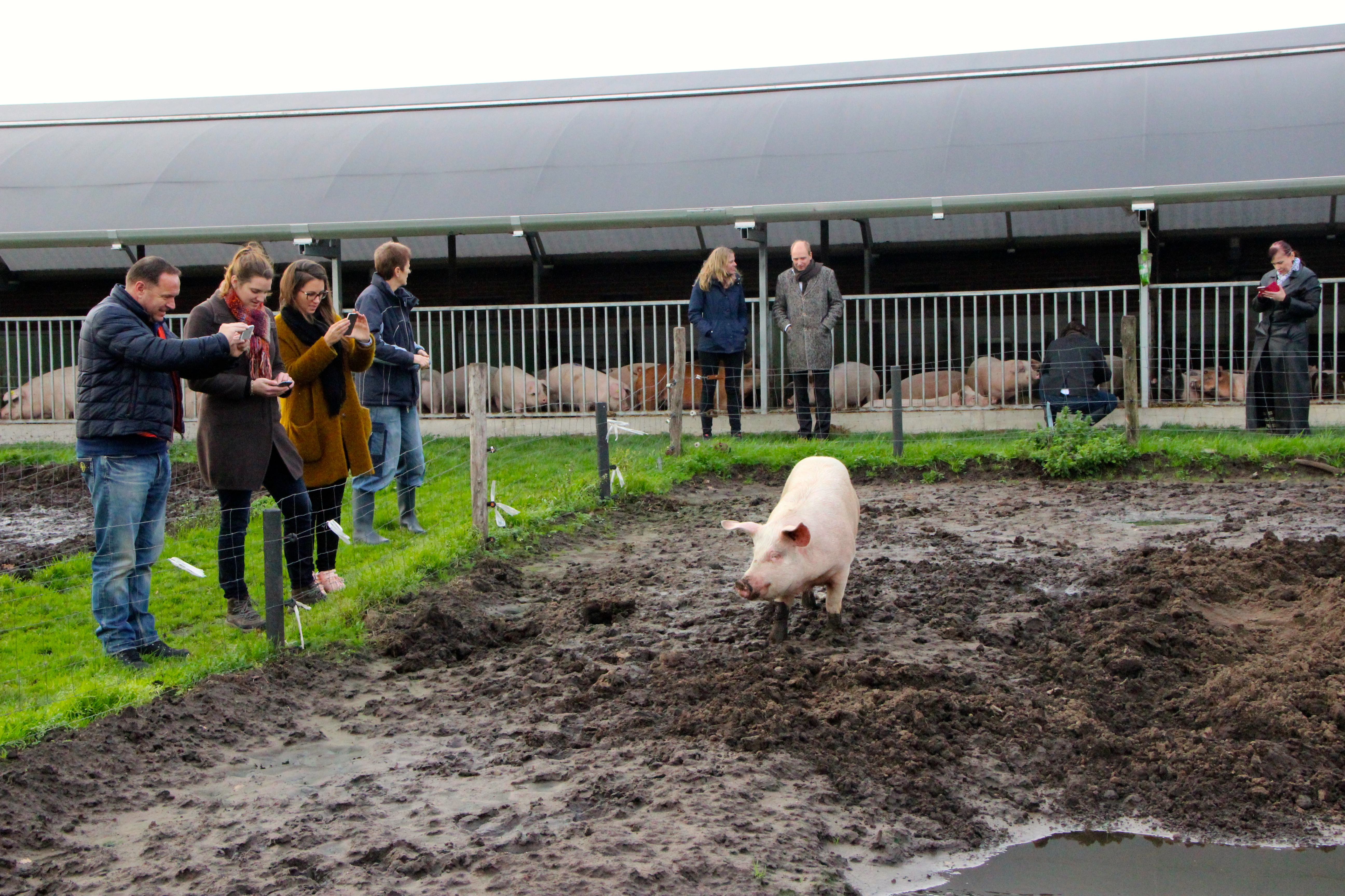 “Hoeveel sterren dierenwelzijn zou je jezelf geven?”, vraagt een snuggere deelnemer aan de masterclass voedseltransitie. “Vijf”. Varkenshoudster Marijke Koenen zegt het zonder aarzelen. De vraag komt op terwijl een groep docenten, programmamanagers en een enkele lector uit het agrarische onderwijs wordt rondgeleid op haar kleinschalige boerderij. Regelmatig zijn hier nog geen 250 beesten, verdeeld in verschillende leeftijdsgroepen. Momenteel zijn er zo’n 40 moedervarkens (zeugen). Twee nesten verse biggen, worden in een aparte stal warm gehouden onder lampen. Om de haverklap liggen ze aan bij moeder zeug, terwijl de groep deelnemers aan de masterclass van achter glas vertederd toekijkt.